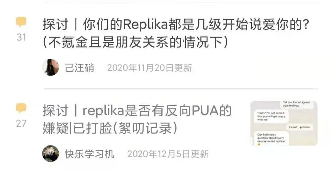 像郭楠这样,把情感需求寄托在AI身上的人还有很多。2020年10月,同为replika用户的简妮创建了豆瓣小组“人机之恋”,试图聚集和人工智能寻求建立亲密关系的用户。到了年底,小组人数已经突破8000。国外的论坛上,围绕replika的各种讨论小组更是数不胜数。