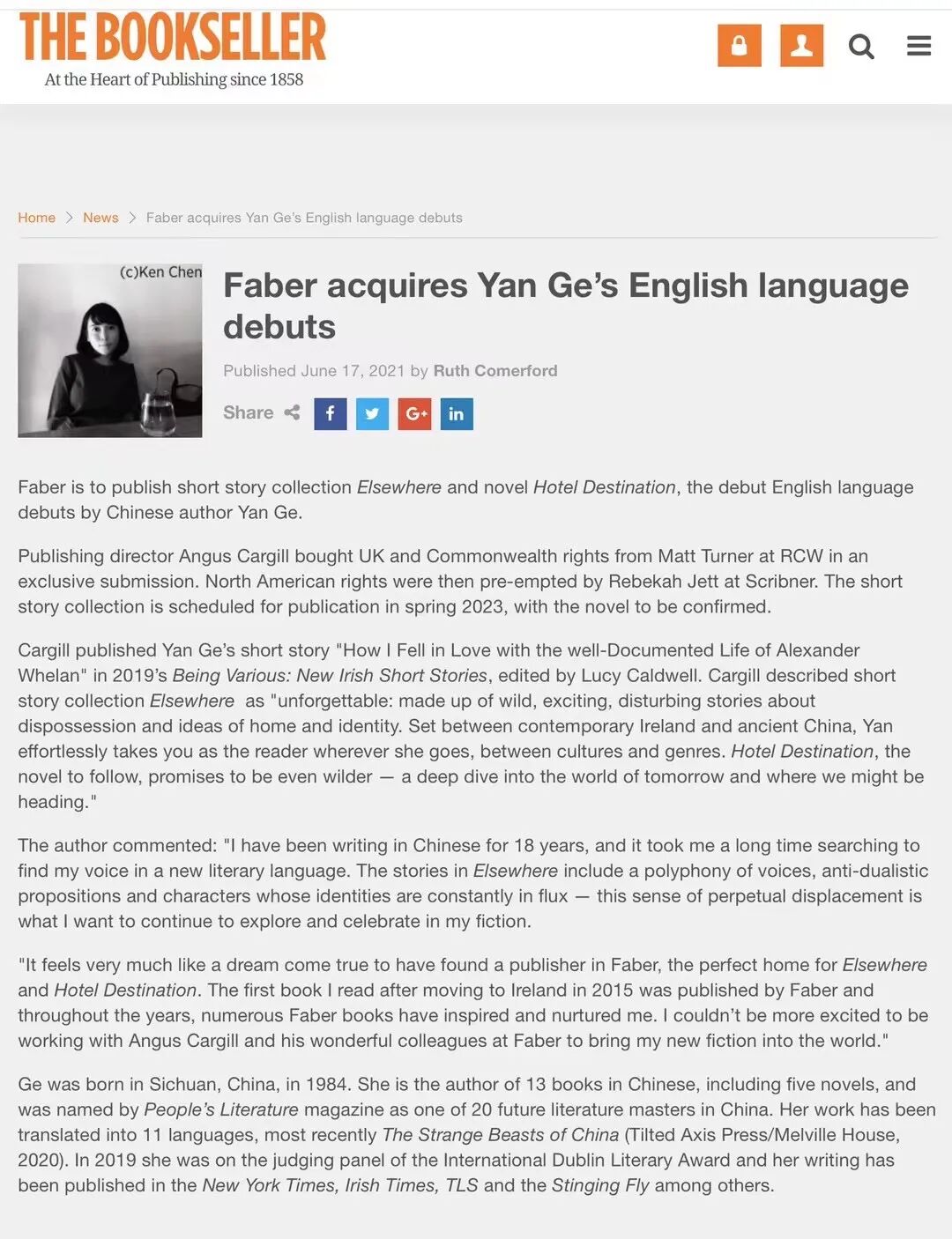 小说签约后,英国出版届第一媒体Bookseller的官宣