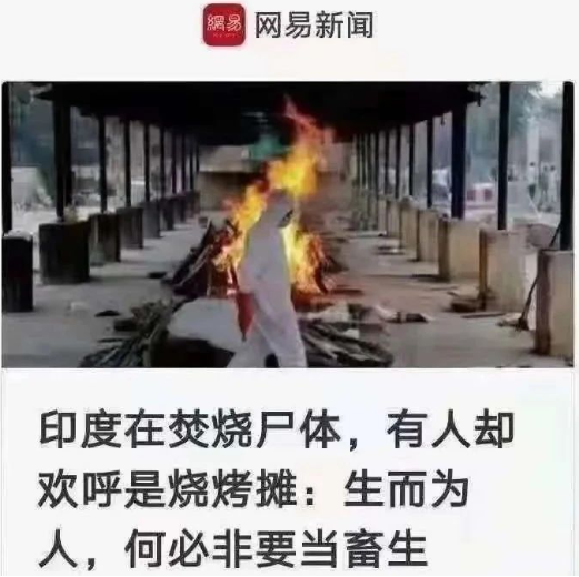 面对印度疫情失控,国内竟有不少人幸灾乐祸地叫好,更有甚者发文表示“有人欢呼焚尸现场像烧烤摊”。更恶劣的是某些媒体也三观不正加入脑残们的合唱。