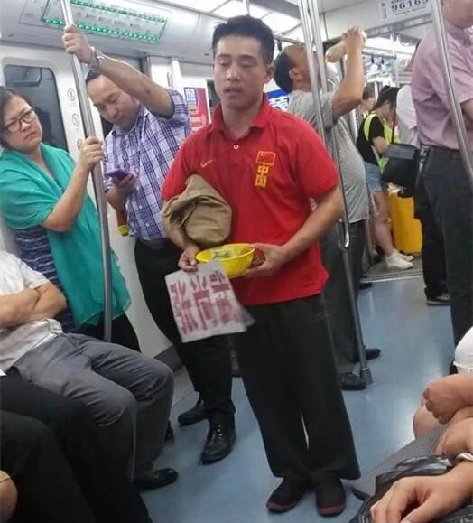 图片中这个在地铁上乞讨的人并不是骗子,他是正经八百的原中国体操队主力队员,张尚武。