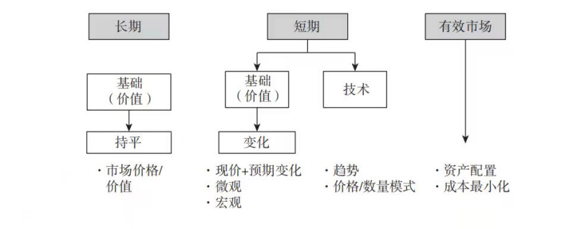 并非所有投资策略都需要在意是牛市还是熊市。对于投资者来说,应该考虑的首要问题就是投资策略。从投资策略图谱(见图14-3)上看,有基于相信市场有效还是市场无效的策略,也有长期的和短期的策略。在最无效的市场中,大家可以做价值投资,在最有效的市场中,只能做指数投资。如果你选择了基于价值投资的长期策略,以及基于市场有效的指数化策略,是没有必要在意牛市还是熊市的。短期策略分两类,第一类是根据趋势,根据价格的数量模式技术分析进行投资,这类也不需要考虑是牛市还是熊市;第二类短期策略需要考虑短期的变化,即基于基本面加预期的变化。唯一需要在意是牛市还是熊市的就是短期策略中的第二类。我始终假设自己没这个能力,这样我的投资策略就能建立在自己没有能力准确预测的基础上。