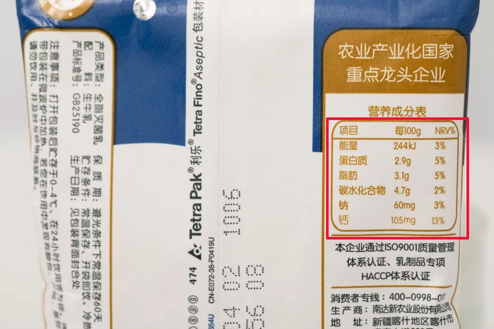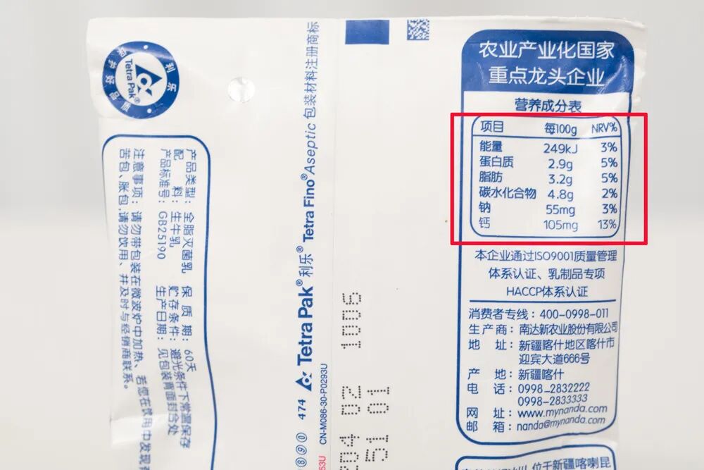 下图是喀喇昆仑纯牛奶的营养成分↓