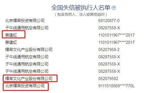目前,綦建虹名下位于北京朝阳区的7处房产都被查封,耀莱所持文投控股全部股票也被司法冻结或轮候冻结。