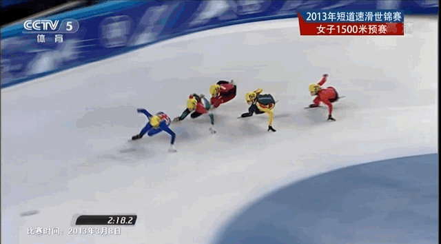 王濛被推出赛道,幸好最后稳住了平衡,但也已经大幅落后。