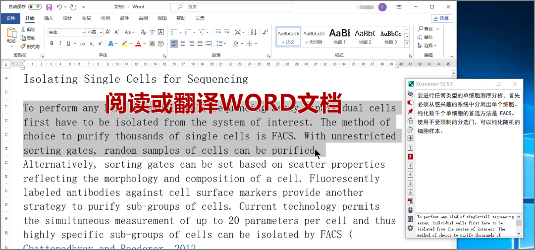 如果你要翻译阅读WORD文档,使用xtranslator也是很好的选择,因为xtranslator携带多种翻译引擎,你可以比较不同翻译结果。