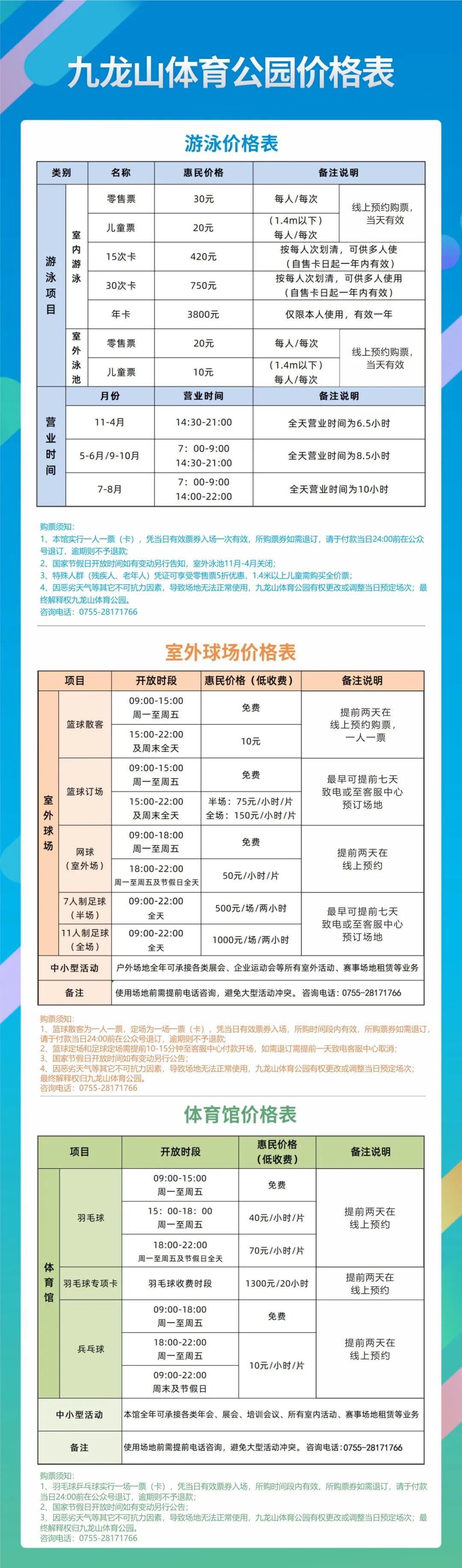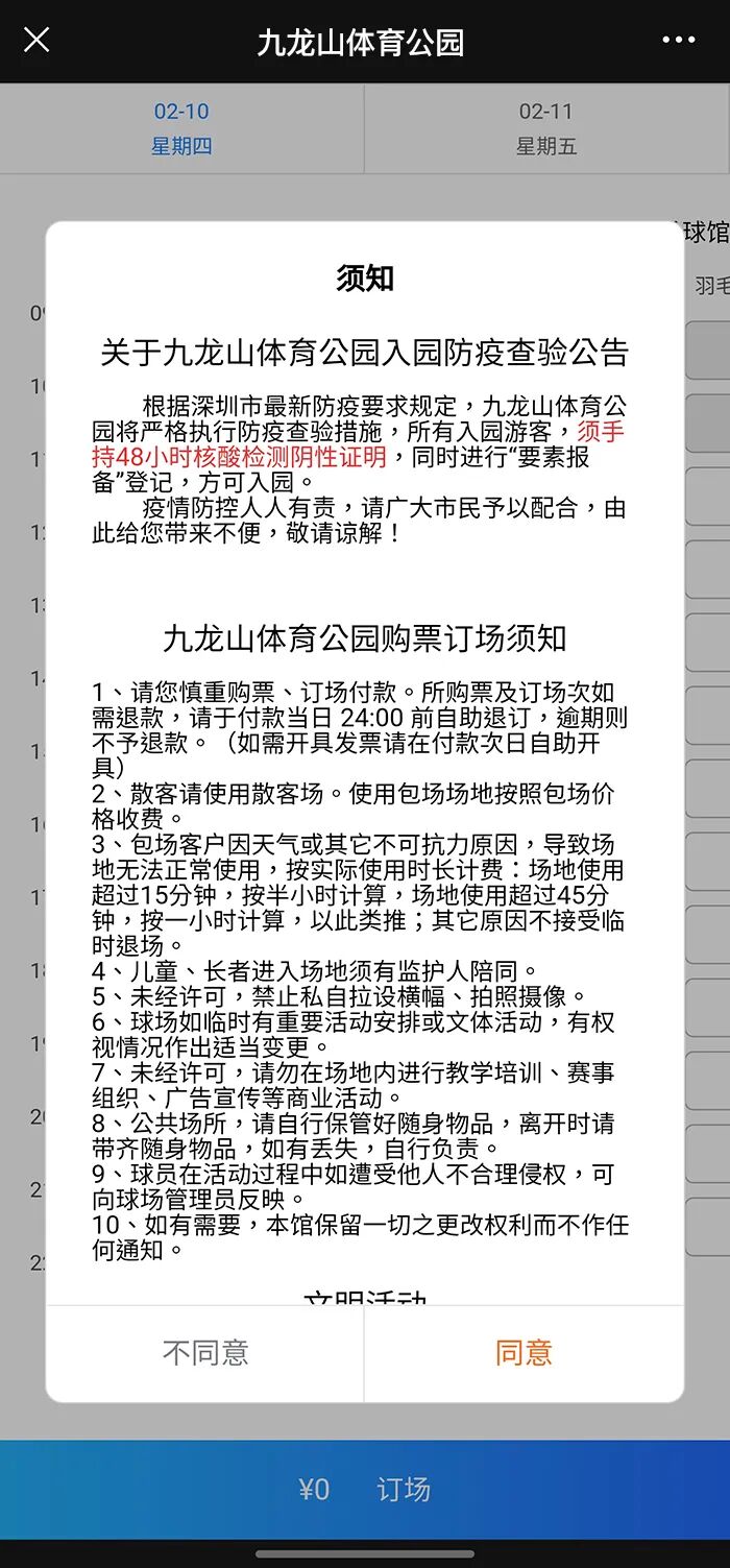 3.根据疫情防控工作需要,目前九龙山体育公园实行持48小时核酸检测阴性证明及填写入园要素报备方可入园,请广大市民提前预约入场,注意安全,做好防疫措施。