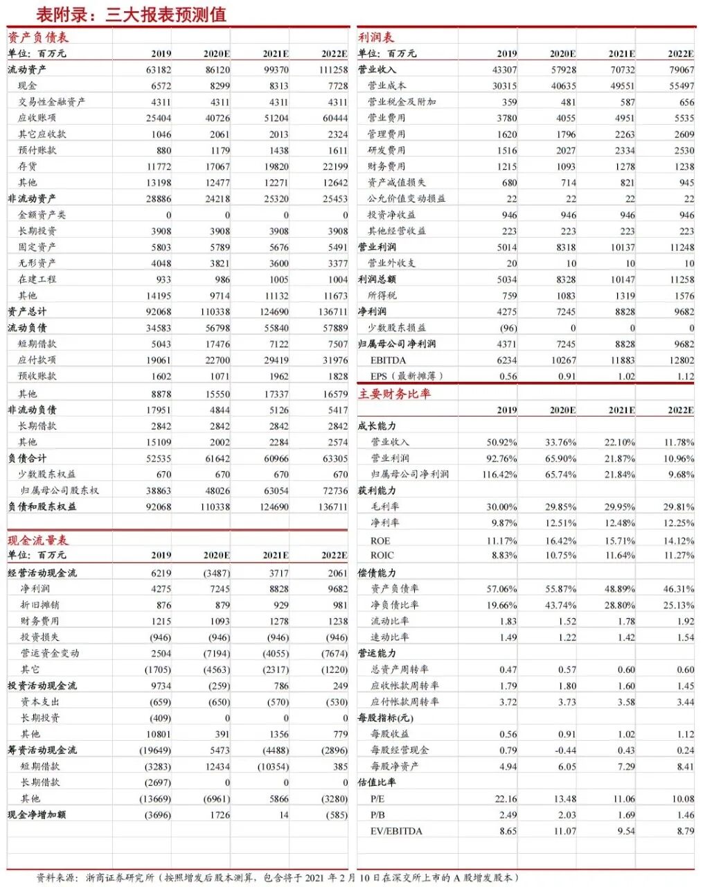 核心观点 增发四个月快速完成,管理层及国内外顶级投资机构认购热情彰显信心 公司于2020年9月29日修改定增方案,到2021年2月5日完成深港两地定增,耗时仅四月,进度快于预期。本次A/H股发行股数占到发行后总股本的5.9%/2.2%,H股募集资金将用于采购核心零部件、补充其流动资金、海外市场拓展以及海外基地建设,加快公司国际化发展;A股募集资金将加码挖机(24亿)、关键零部件(13亿)、搅拌车(3.5亿)智能制造,进一步提升公司核心竞争力。本次A股增发最终发行价为10.17元/股,按照申购报价日收盘价11.44元/股测算,折价率仅为11.1%,获配对象皆为国内外知名投资机构:基石资本22.7亿,摩根大通7.5亿,财通基金5.5亿,瑞银4.5亿,摩根士丹利国际4亿,中信建投证券4亿,湖南迪策鸿泰投资3.77亿。管理层大量认购港股,国内外顶级投资机构积极认购A股,彰显公司发展及投资者信心。 1月挖掘机销量预计高增长,起重机械、混凝土机械有望保持较高景气度 据CME工程机械网预计2021年1月挖掘机(含出口)销量约2.05万台,同比增长106%。其中,国内市场销量约1.7万台,同比增长约112%,环比下降37%;出口市场销量3500台,同比增长约60%。挖机作为公司重点拓展业务,新产能逐步投产,2020销量同比实现多倍增长,主要以中挖为主。2021年公司挖机销量目标翻倍,小挖有望实现放量。作为工程机械领域的先导产品,挖机旺盛销售将传导至起重机械和混凝土机械等后周期产品,工程机械高景气有望延续。 公司挖掘机、高空作业平台、农机高增长,盈利能力不断增强,估值持续修复 公司传统优势产品龙头地位稳固,新兴产品加速成长,2021年挖机/高机/农机有望实现100%/100%/50%以上增长,业务布局日益完善,盈利能力及竞争力不断增强,估值进入持续修复阶段。 盈利预测与估值:估值仍相对较低,维持“买入”评级 公司定增完成将进一步提升竞争力,推动公司可持续发展。根据公司此前发布的2020年全年业绩预告,我们预计公司2020-2022年可实现归母净利润73/88/97亿元,同比增长66%/22%/10%,股本增发摊薄后,对应EPS为0.91/1.02/1.12元,PE为13/11/10倍。对比工程机械板块可比公司平均水平,公司估值仍相对较低,维持“买入”评级。 风险提示 |