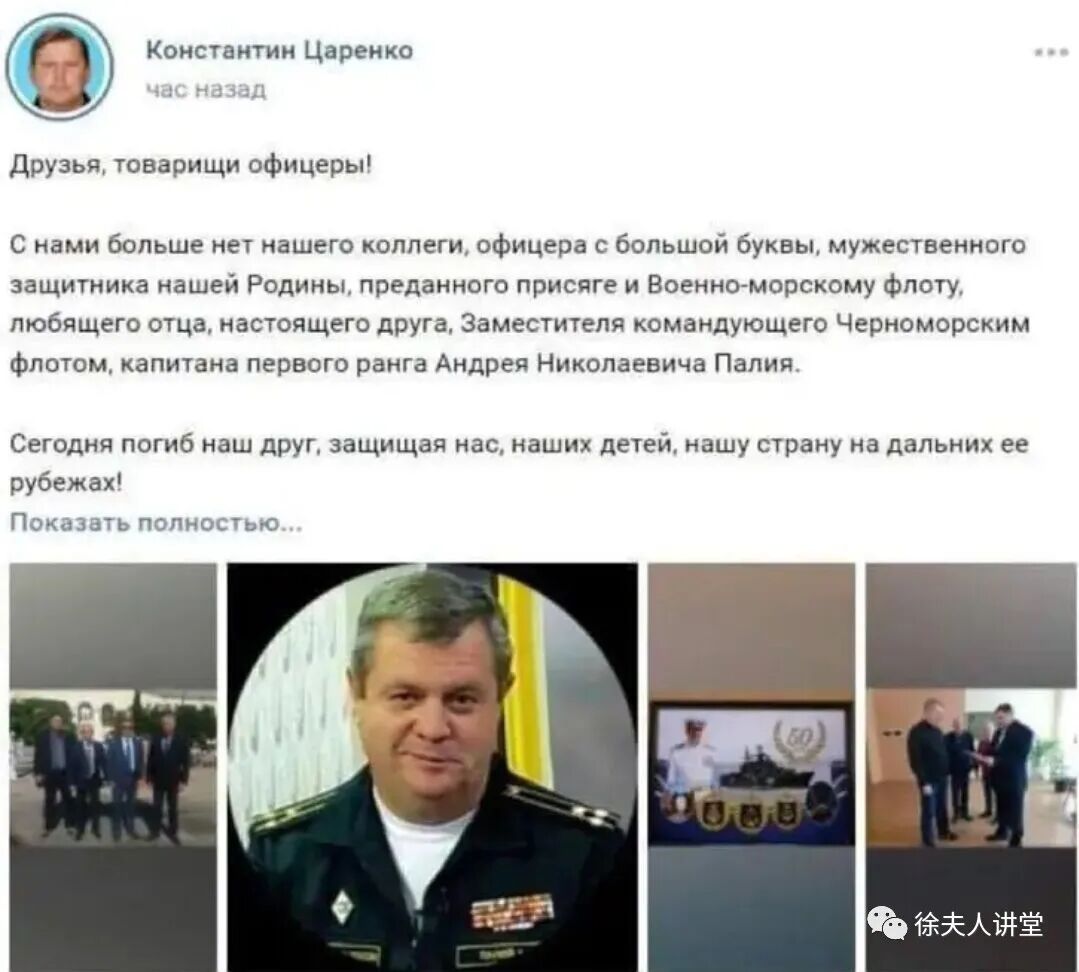 说到俄黑海舰队副司安德烈·尼古拉耶维奇·帕利的阵亡,刚开始在网上还出现了很大的争议。俄军这位舰队副司令是俄罗斯黑海舰队最先进的导弹驱逐舰舰长,该舰受到袭击后,乌克兰国防部当天通报了战况,俄军方面没有做出回应,为俄罗斯入侵乌克兰洗地站台的俄粉跳出来说,乌克兰的通报造谣,通报中所提到的驱逐舰完整无缺,在黑海执行任务。这些人编造的像真的一样,结果,还是被尼古拉耶维奇帕利的朋友在媒体平台发消息打了脸。