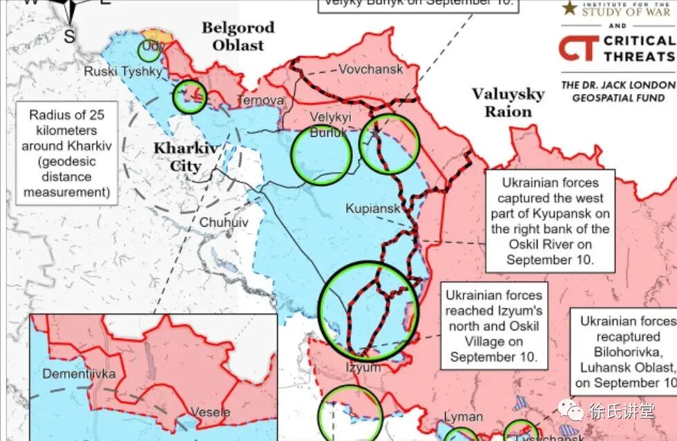 美国战争研究所通过卫星观察统计,从八月底乌军反攻以来,截至9月10日,乌克兰武装部队在短短的十天内,解放了2700平方公里的土地。除了近几天乌军在哈尔科夫地区连续取得进展以外,赫尔松地区的乌军也一直没有停止反攻,现在乌克兰武装部队在南部不同的方向推进了2~20公里,南部的俄罗斯军队被进一步压缩。