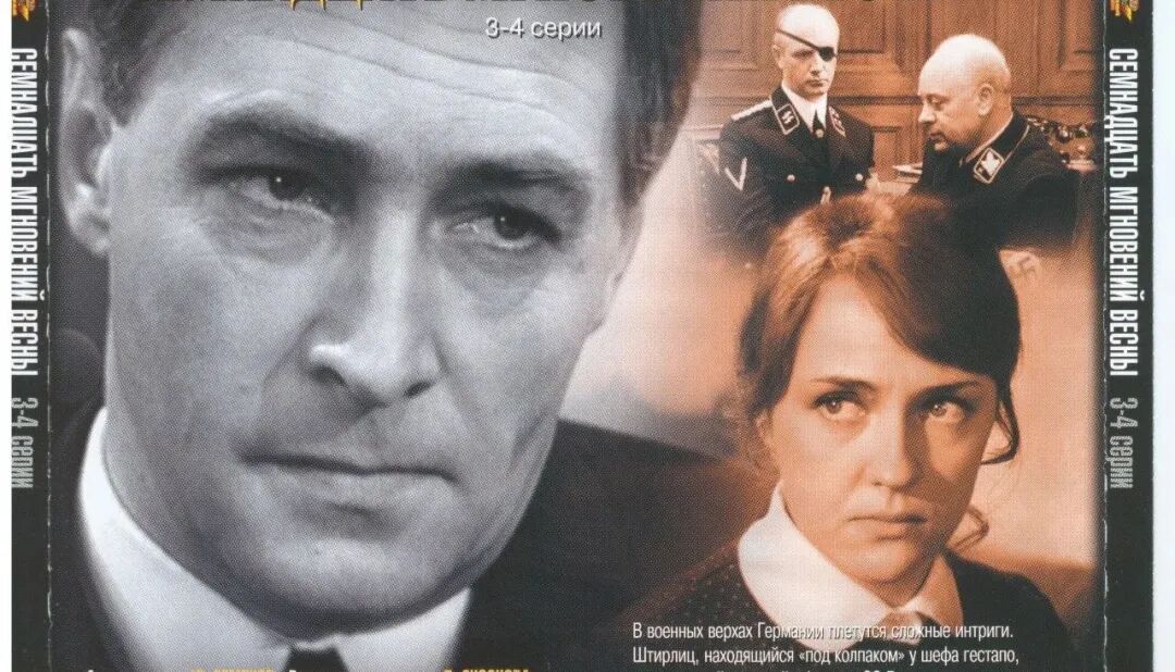 施季里茨是全剧着力塑造的英雄人物,他富有斗争经验、充满智慧,有着坚定的信仰和不畏艰险、视死如归的革命英雄主义精神,因而能在敌营中一次次完成总部交给的任务。著名演员吉洪诺夫在该片中的表演沉稳、干练、富有内在的激情,具有强烈的历史感和时代气息。同时,导演还运用闪回、内心独白和细微的动作刻画人物复杂的内心世界,片中施季里茨与分别10年之久的妻子在咖啡馆里秘密会面时,为了不被敌人察觉,他们佯装成陌生人,隔桌遥相对视,在20分钟里一言不发,完全靠眼睛这扇“心灵的窗户”将人物内心强忍的离别痛苦和无限思念之情表达出来。