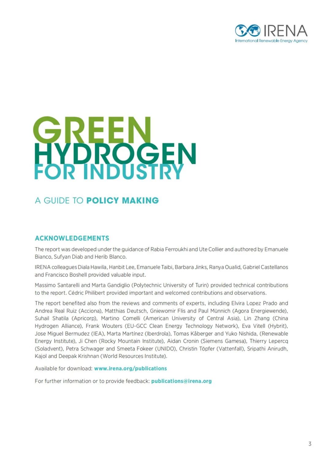 月国际可再生能源署发布了第一份指南《绿氢:政策制定指南》,