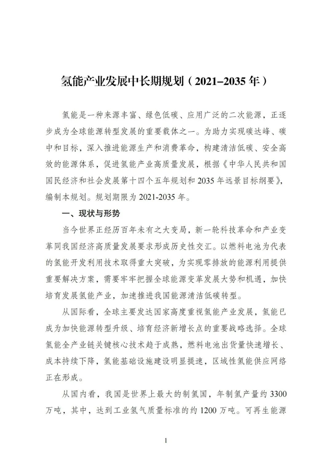 重磅!《氢能产业发展中长期规划(2021-2035 年)》发布!