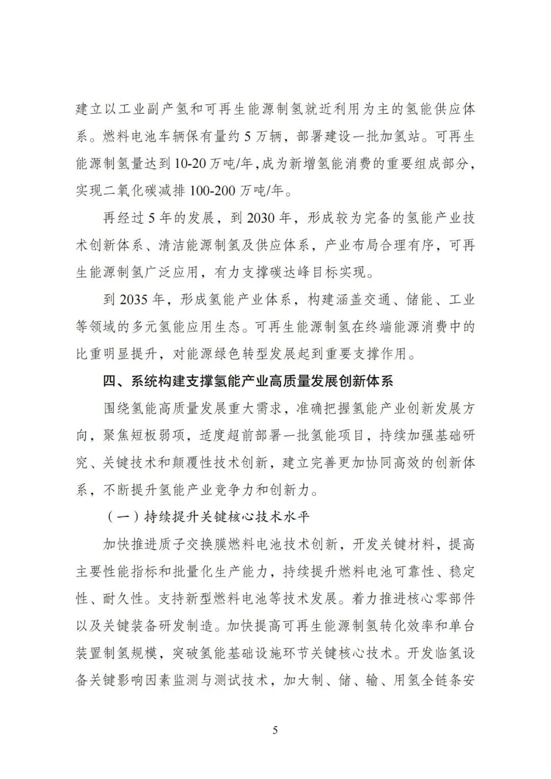 到2030 年,形成较为完备的氢能产业技术创新体系、清洁能源制氢及供应体系,产业布局合理有序,可再生能源制氢广泛应用,有力支撑碳达峰目标实现。到 2035 年,形成氢能产业体系,构建涵盖交通、储能、工业等领域的多元氢能应用生态。可再生能源制氢在终端能源消费中的比重明显提升,对能源绿色转型发展起到重要支撑作用。