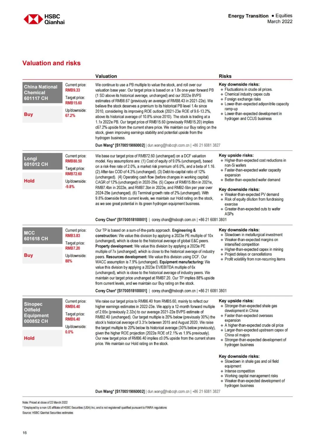 报告还分析了我国绿氢发展的情况对一些企业的影响。对于中国化工来说,估计到2024年,绿色氢和碳捕获、利用和存储(CCUS)将直接给公司贡献14%左右的营收;隆基作为光伏制造龙头企业,也在氢能领域有布局,当前电解槽生产能力为500兆瓦,并计划在五年内将其扩大到5-10千兆瓦,因此对于业绩也会有积极影响;中冶集团作为国内最大的冶金公司,如果将氢能用于冶金领域,也将对业绩起到积极影响。