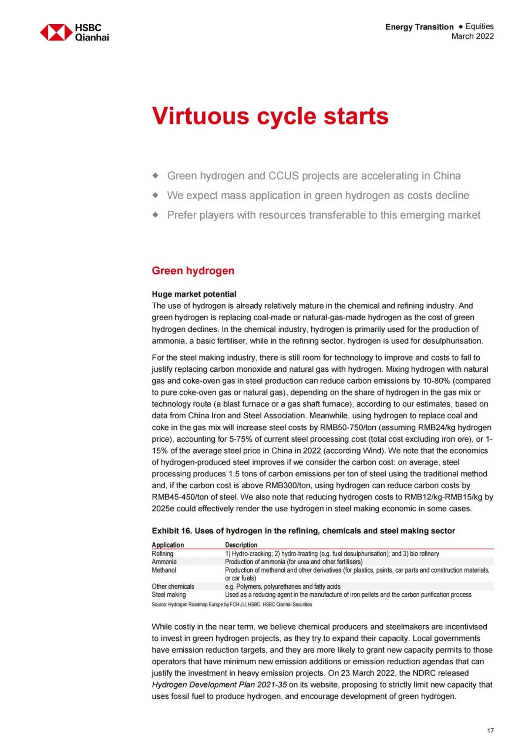 因为中国的光伏、风电成本下降和很快,因此让人们对于绿氢的成本下降和扩产充满信心。