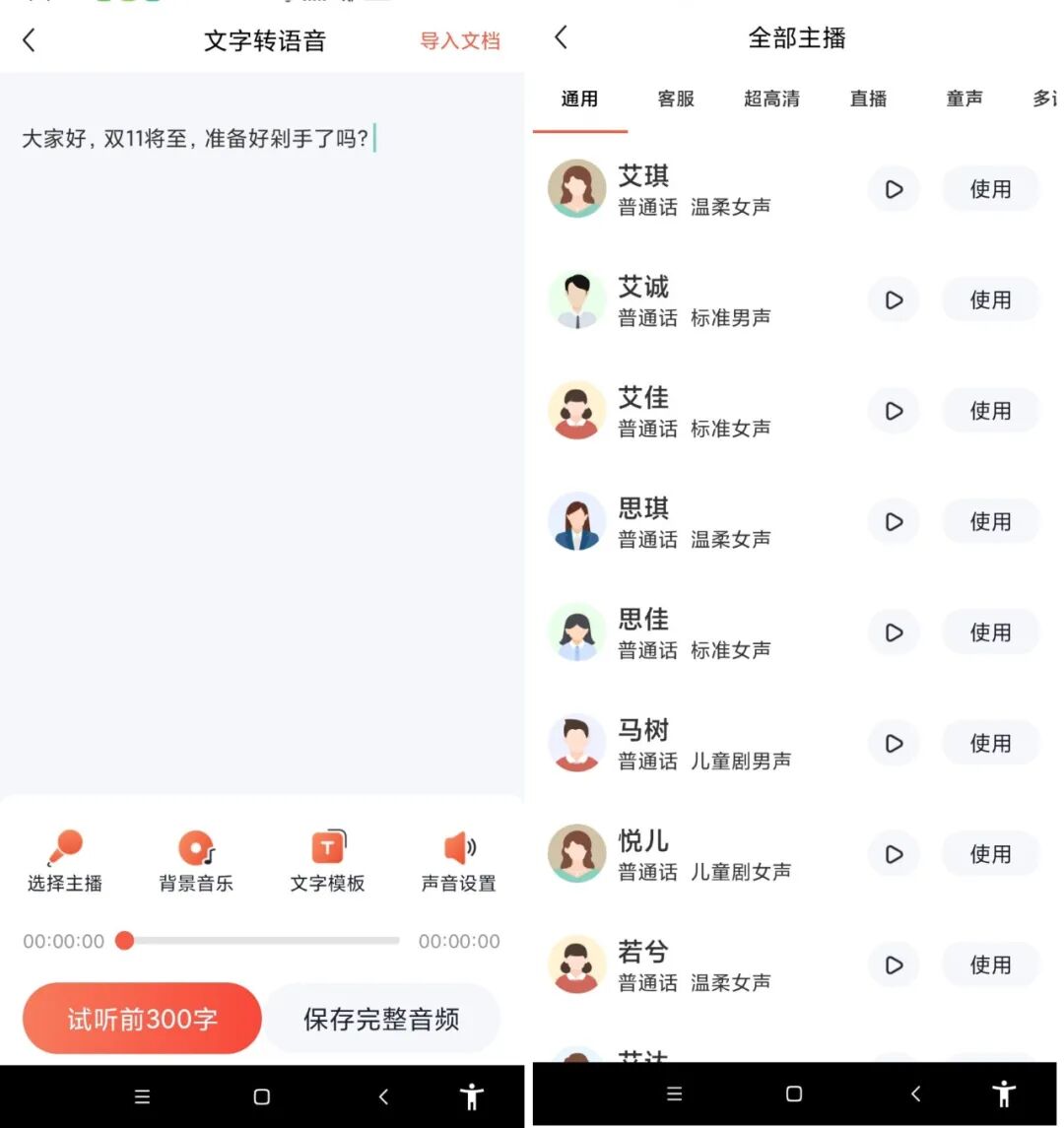前几天后台收到留言说需要一款(录音/文字互转的软件),这不今天小编又找到了一款“会员版的”可以任意使用全部功能,而且功能多而且强大。这些功能对于处理语音、文字可以完美契合那些搞自媒体或者办公的小伙伴。它支持文字转换成语音/录音转文字,内置了海量主播,可以导出MP3、MP4非常适合那些录视频不喜欢露脸的,非常的强大。*今天也把其它的三款同类型一起安排上,需要哪个用哪个!【最近大家打咔支持率持续降低,小编快吃不起饭了,跪求支持!】