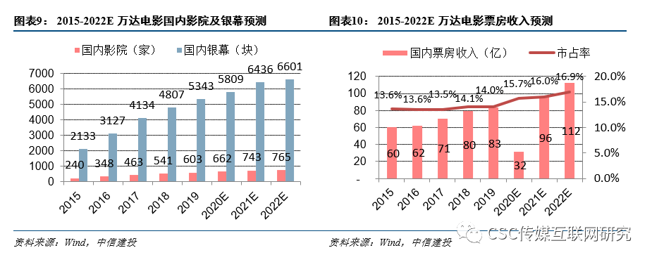 假设2021年国内票房收入恢复至2019年,在当前万达影院扩张进度下我们假设2021年万达票房收入市占率提升2%。