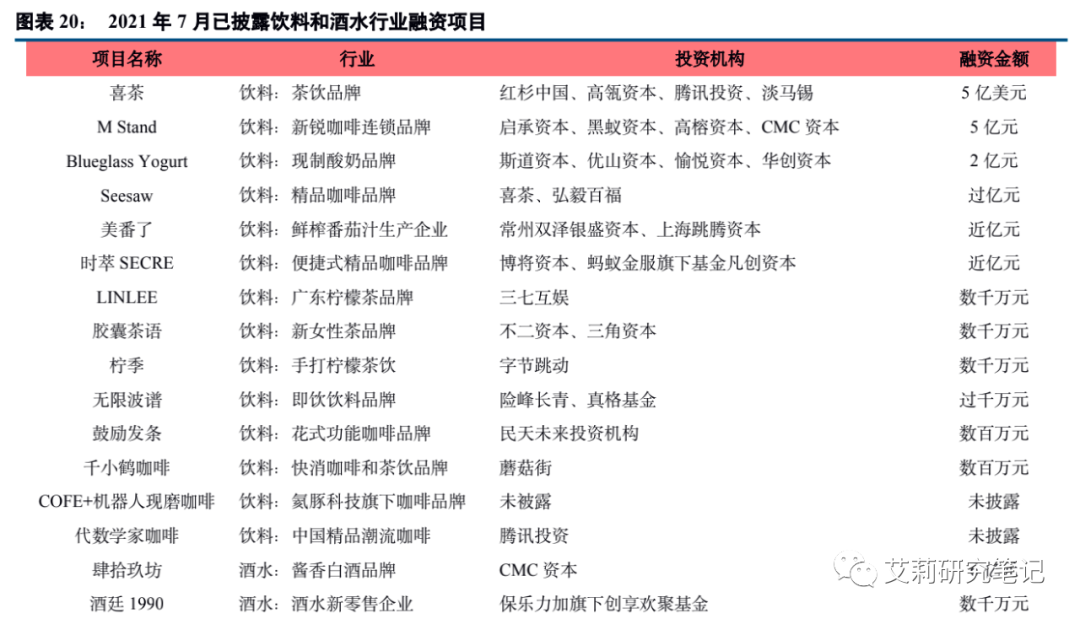 2、饮料酒水:连锁茶饮&咖啡持续获得投资,新白酒品牌获得高额投资。