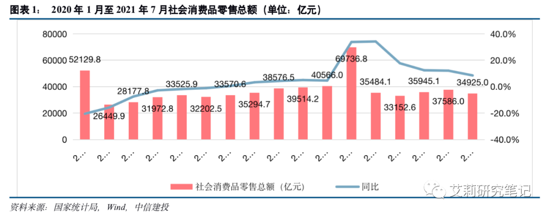 一、7月社会消费品零售情况:线上线下增速继续放缓