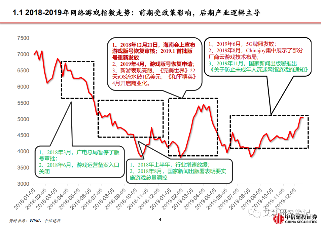 ➢回顾2018年游戏版号停发前后,我们发现行业的估值股价变化,通常遵循五个演进逻辑:政策变化——版号停发——重启发放——产品驱动/政策驱动——产业驱动。