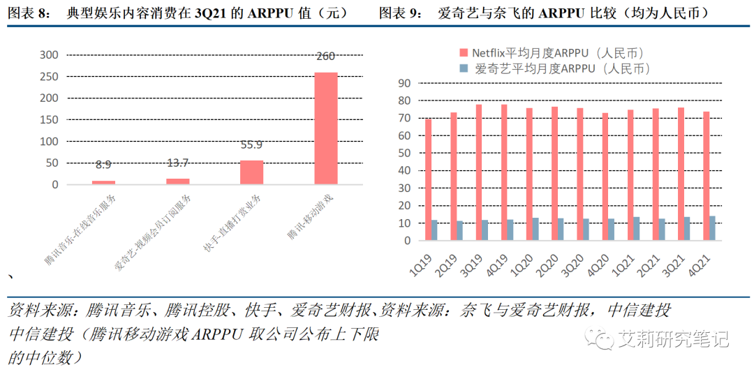 我们认为爱奇艺Q4财报反映了长视频行业成本下降、单用户ARPPU提升,以及政策监管带来的正向效应。2018年年末,爱奇艺对电视剧单集采购最高价率先控制,到2021四季度的报表减亏。这或将意味着长视频行业经过多年的竞争和烧钱,各家逐步转入对经营效率和盈利能力的关注。