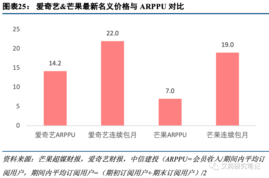 横向比较:长视频ARPPU远低于直播、游戏等娱乐消费。我们将长视频平台的会员付费ARPPU,与其他典型的娱乐内容消费相比,我们发现视频会员订阅ARPPU仅高于在线音乐,远远低于直播与游戏。具体来看,在3Q21,腾讯-移动游戏业务、快手-直播打赏业务、爱奇艺-视频会员订阅服务、腾讯音乐-在线音乐业务的ARPPU分别为260、56、14、9元,与其他类型的内容娱乐消费横向对比,长视频的会员付费价格仍有提升空间。