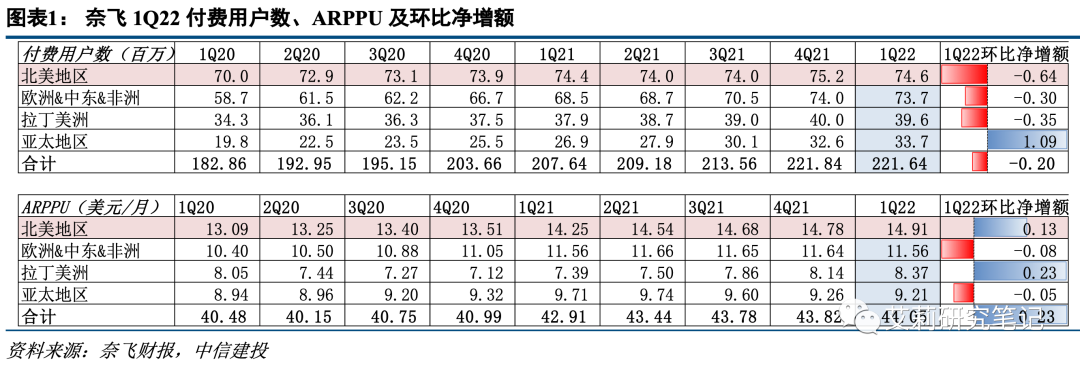 1)从付费率来看:国内外对比,奈飞1Q22在北美地区的会员数为7458万,占美国、加拿大总人口的20%,该比例约是国内平台的2倍;而相较其他泛娱乐赛道,手机游戏、游戏直播的付费率超过30%,在线视频则为18.8%。