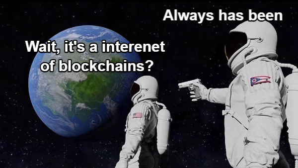 只有一条链,那就是承载着比特币的链。比特币有其特殊的历史地位,在全部加密货币中拥有最强的共识,监管对其的态度也最为友好。显然,这个分工岗位无人可代替。