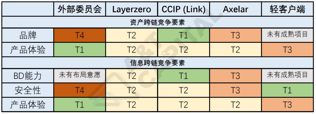 4)资产跨链赛道的核心竞争要素是品牌和产品体验;信息跨链赛道的核心竞争要素是BD能力、安全性和产品体验。