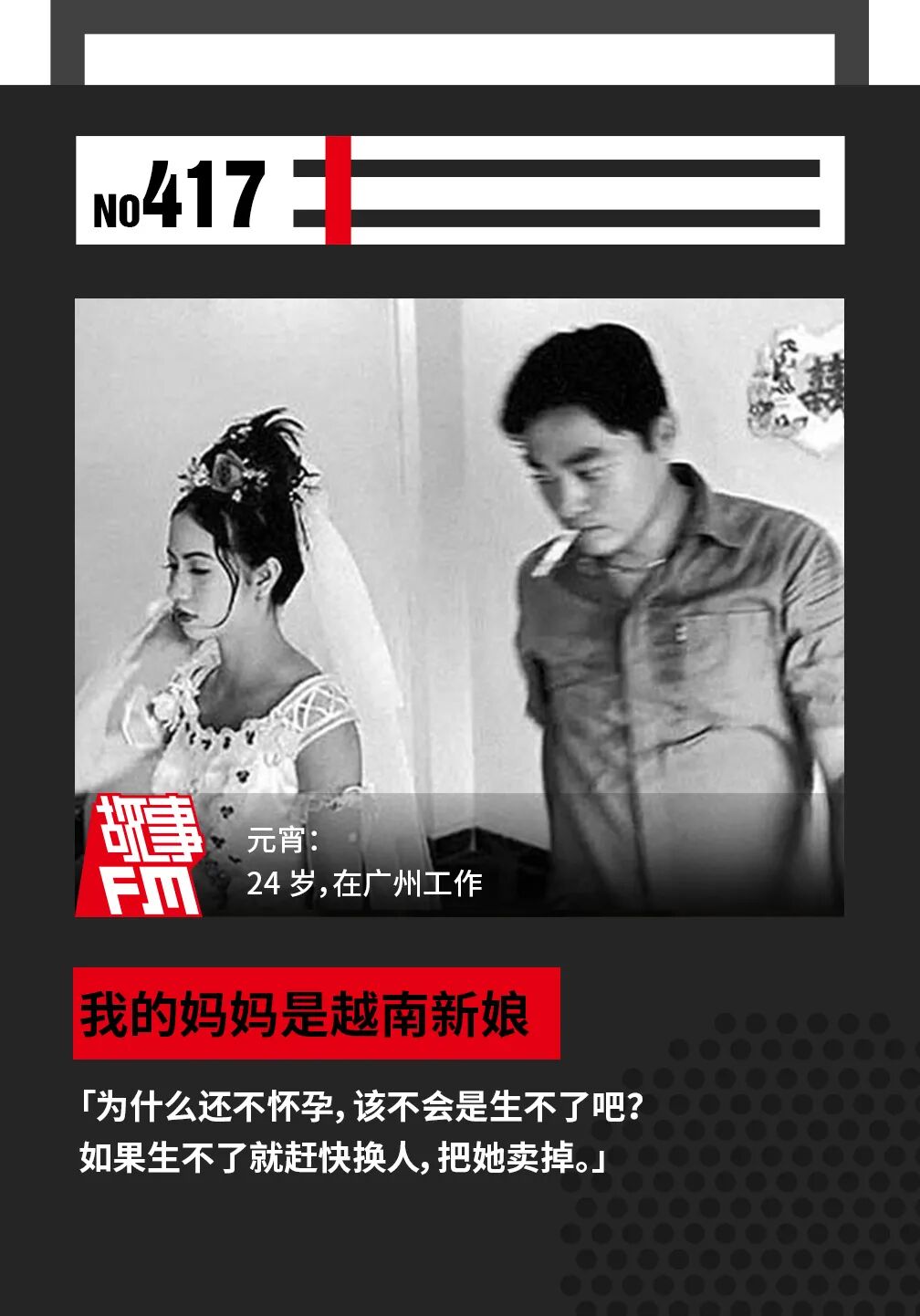 有了孩子以后,虽然再也没有人说把她换掉这种话,但我妈妈「越南新娘」的身份却一直摆脱不掉。