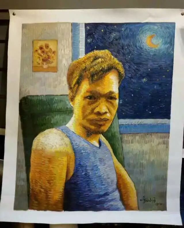 他进店就夸我的画很漂亮。他从包里拿出了 10 张梵高作品的相片——我们临摹油画都是照着原作相片来——想跟我谈一笔 20 张图的订单。