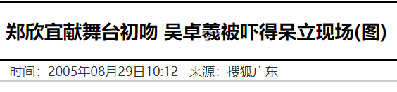 2005年8月,郑欣宜在《儿歌金曲颁奖礼》上受邀出演音乐剧中的公主,片方安排她亲吻王子吴卓羲。