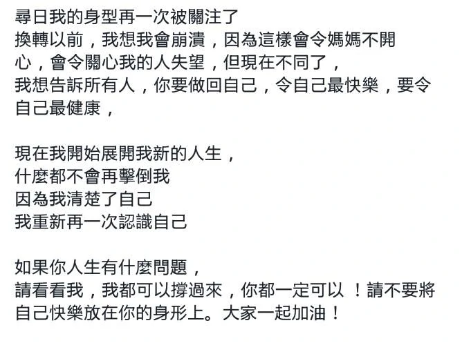 这是郑欣宜出生以来,第一次用如此“强硬”的语气来回应外界对她肥胖的批评,随后超过十万人为这篇文章点赞。