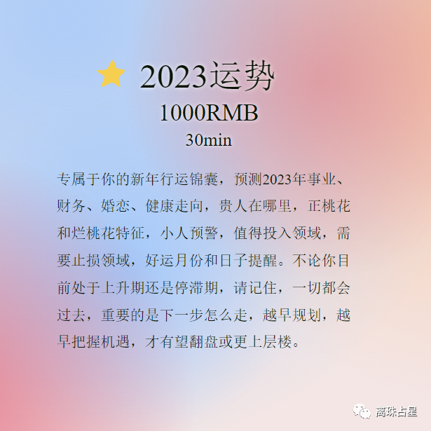如果你想更好地了解自己的潜力和未来机遇,可以找我看一下个人全盘,或者明年的整年运势: