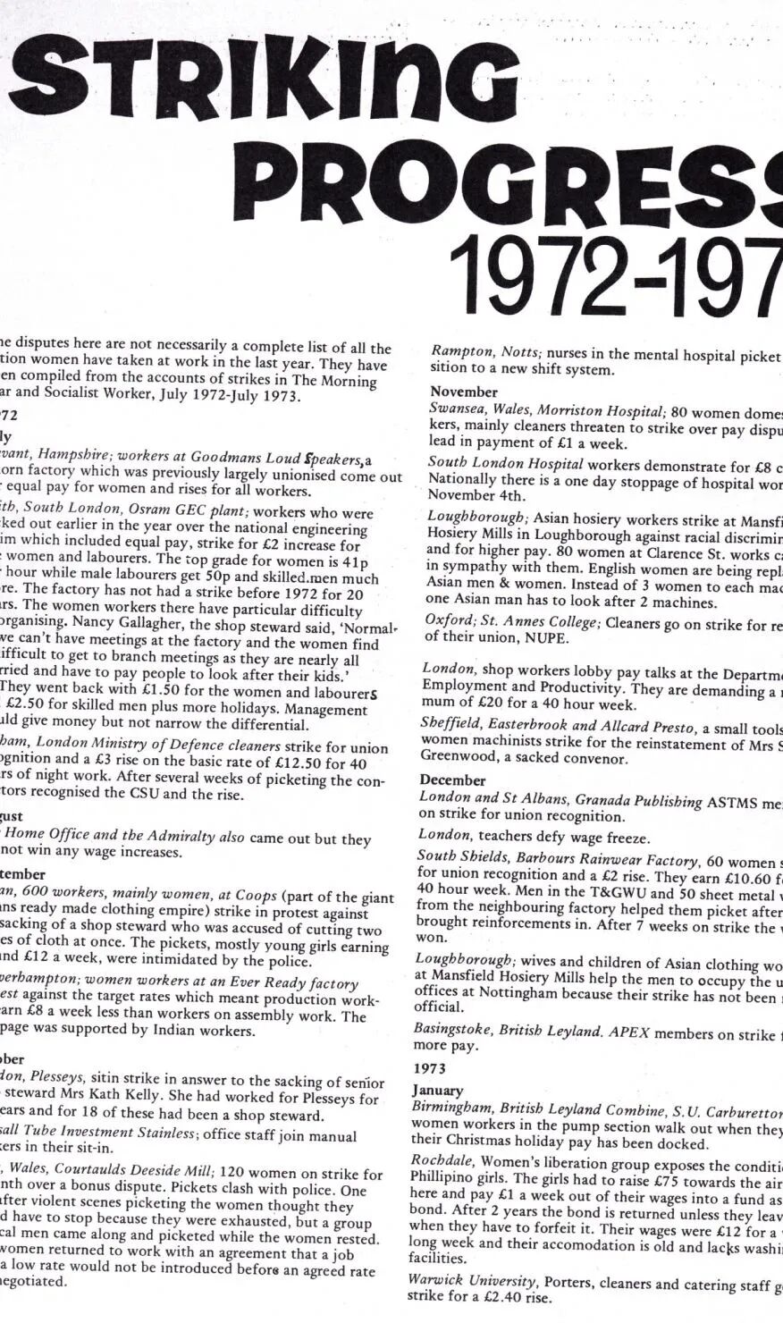 Red Rag整理了工人女性为争取同工同酬而进行的罢工行动。