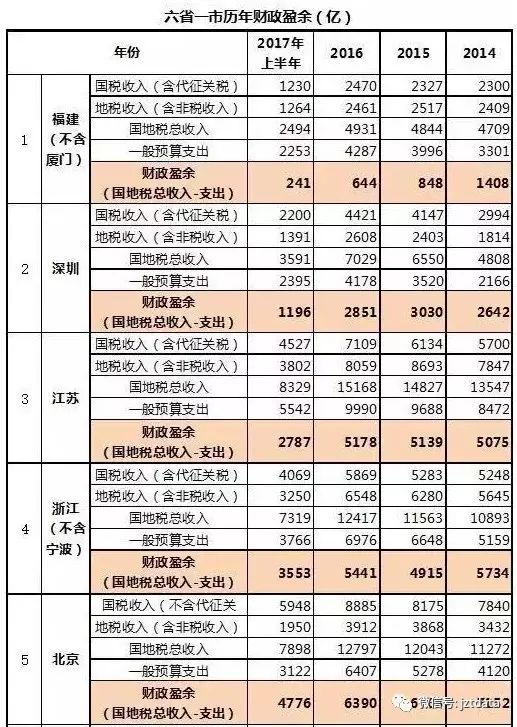 OK,让我们来一起看看中国财政的数据,绝对颠覆你的三观!首先登场的是“共和国长子”东北三省辽宁、吉林和黑龙江。三十年河东三十年河西。毛泽东时代,东北三省曾经是中国大陆最早工业化和城市化的地区。现在,东北三省是中国经济转型最艰难地区,奇葩的辽宁省去年的GDP居然出现了负增长,金融圈有句名言“投资不过山海关”。东北三省的财政缺口越来越大,2014年合计为3562亿元,2015年激增至5268亿元,2016年继续增长到5580亿元,2017年上半年为2575亿元,考虑到下半年财政压力更大,预计2017年要直奔6000亿元了。山海关以外债务深重经济低迷,山海关以内的情况又如何呢?一起来看看紧挨着东北的华北三省河北、天津和山东。北京是全国人民的北京,所以没有计入华北片区中。万万没想到,挂着“东部沿海省份”光环的山东、天津和河北居然都在亏钱。GDP排名第三的山东居然在2016年丧失了财政独立能力,开始向中央伸手要钱。2016年只亏了64亿元,2017年才过了一半就亏了387亿元,这就像大坝决堤,一发不可收拾。顺带说一句,青岛在行政上隶属于山东,但在财政上却不归山东管。山东省经济发展不平衡,临沂革命老区的包袱太重了。严重依赖外贸的胶东地区也陷入了瓶颈期。作为北方最大的港口城市,天津2016年的地税收入(含非税收入)居然同比下降了15%,财政缺口同比增长了164%。而在官方媒体里,天津2016年的人均GDP排名全国第一,比北京上海还要高,被吹为“闪耀的明星”。为什么会这样矛盾呢?因为天津的经济发展主要靠国有企业的固定投资拉动,而国企上缴给政府的税后利润都会还给企业。而有“环京贫困带”的河北毫无悬念,一亏到底。国地税总收入增长缓慢几乎停滞,而预算支出却屡创新高,刚性缺口预计要飙到2500亿。河北人民真可怜,经济持续低迷不振,环境也越来越糟糕,2016年空气污染top10城市占了6个席位。太行山以东的华北三省的财政缺口越来越大,那太行山以西的西北片区呢?西北片区地形复杂且气候恶劣,是中国扶贫工作的主战场。不会有任何意外,西北7省(宁夏、青海、山西、陕西、内蒙古和新疆)全都处于财政亏空状态,它们当然都无法向中央财政贡献盈余,并且一定会高度依赖中央财政的转移支付。2016年,宁夏财政缺口规模732亿元,青海1225亿元,山西1517亿元,甘肃1884亿元,陕西1962亿元,内蒙2564亿元,新疆3162亿元,合计13046亿元。仔细看数据会发现一些奇特的现象:2016年青海的国地税总收入为298亿元,一般预算支出为1523亿元,支出是收入的5倍,青海政府每花一块钱,中央财政就要补贴四块钱;从2014年到2016年,陕西和新疆的国地税总收入连续两年在下降。干旱的西北很穷很困难,再往南走一点就到了湿润温暖的西南片区,那里的情况也很糟糕吗?西南片区六省市,重庆、西藏、云南、贵州、广西和四川,当然也不会有任何意外,全部处于财政净缺口状态。GDP增速三连冠的重庆在花钱方面也习惯了大手大脚,导致财政刚性缺口也越拉越大,是四大直辖市里最需要中央补给的,毕竟还要供养14个国家贫困县。从人均财政补贴来看,西藏遥遥领先。2016年西藏的常住人口为331万,对比其1397亿的财政缺口(也就是中央财政补贴),意味着当年度西藏的人均财政为42205元。而2016年度中国的城镇人口的人均收入为33616元。由此可见,中央扶持西藏发展的决心有多么大!2016年,重庆的财政缺口1222亿,西藏1397亿,云南2229亿,贵州2270亿,广西2412亿,四川3542亿,合计13072亿。与2014年的合计财政缺口规模10020亿相比,增幅30%。今年上半年的财政缺口合计7040亿,预计今年的总缺口将超过1.5万亿。西部大开发,烧钱自然多,全国人民都能理解。那么,整天嚷嚷要崛起的中部片区要不要中央补一补啊?中部片区6省,海南、安徽、江西、湖北、湖南与河南(说明一下,海南实在是没片区合适放,所以放到了中部),基本上都是人口大省,当然也是财政缺口大省。最南端的海南虽然地小人少,但财政缺口却一年上一个台阶,2014年是200多亿,2015年是300多亿,2016年是400多亿,2017年预计会超过500亿。要是人均收入有这么快的增速该多好呀!作为人口过亿的中部大省,河南的财政刚性缺口当然是全国第一,预计今年会超过5000亿元,和东北三省的总量相当。呵呵,官方媒体吹捧的河南原来是大穷鬼。2016年,中部六省财政缺口合计13325亿,较2014年的合计财政缺口数9074亿,增幅47%。今年上半年的财政缺口8008亿,预计今年是要直奔1.7万亿而去了。我们将这25个省市的财政缺口数据汇总起来,我们将得到一个很惊人的总数,见下表:从2014年到2016年,25省合计的财政缺口数从31927亿,上升到48134亿,增幅51%。而今年上半年的财政缺口合计已经超过2.5万亿,今年一定是要超过5万亿了。因此,我们现在必须要知道的是,剩下能够创造出财政盈余的6省一市:广东、江苏、浙江、福建、北京、上海和深圳(计划单列市),它们到底能挣多少钱。它们有没有能力,补上这5万亿的财政缺口?2016年,福建的财政盈余644亿,深圳2851亿,江苏5178亿,浙江5441亿,北京6390亿,上海7748亿,广东9301亿,合计起来,六省一市总共给中央财政带来了30373亿的贡献。但是,我们必须意识到,这种贡献规模已经达到了极限了,从2014年到2016年,六省一市合计的财政盈余幅度始终维持在3万亿左右。今年上半年的合计盈余规模1.7万亿,考虑到下半年的财政支出更大,预计今年这六省一市的财政盈余规