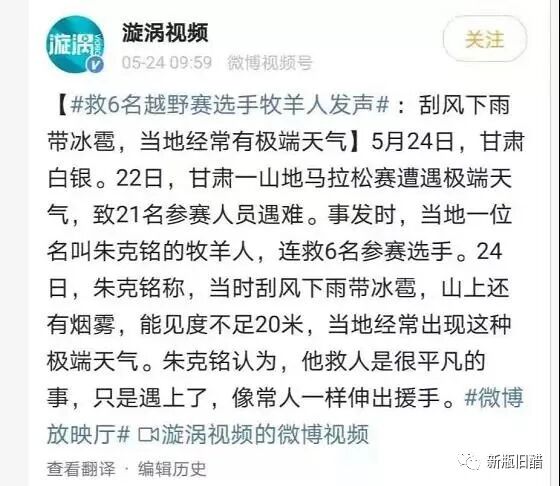 甘肃马拉松越野赛致21死的悲剧发生后,救助过参赛选手的牧羊人朱克铭成为了人们关注的重点,他因为事发时连救6名参赛选手,感动了很多人。