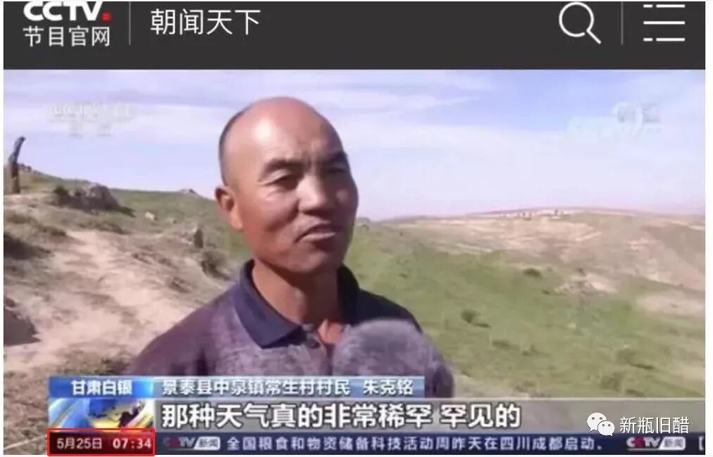 然而在5月25日,牧羊人在接受央视采访时则表示,甘肃白银这次的失温天气很罕见。说这话的时间,是早上7:34分。