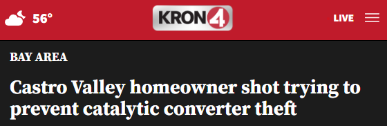 目前,针对这起事件的调查仍在进行中。据了解,这起事件是最近湾区发生的第二起由催化转换器盗窃案演变的枪击暴力事件。不久前,有一名60岁的奥克兰居民因在家门口阻止窃贼偷盗自己汽车的催化转换器而被枪杀。