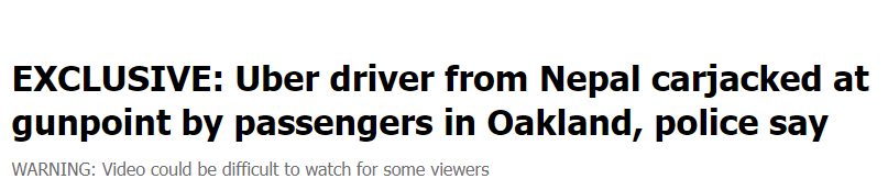 根据报道,10月1日晚上8点左右,东湾优步司机巴姆.马格尔(Bimal Thapa Magar)接受了一个1.5英里的行程。他说,直到两名乘客没有在东奥克兰的目的地下车,他才怀疑有什么不对劲。