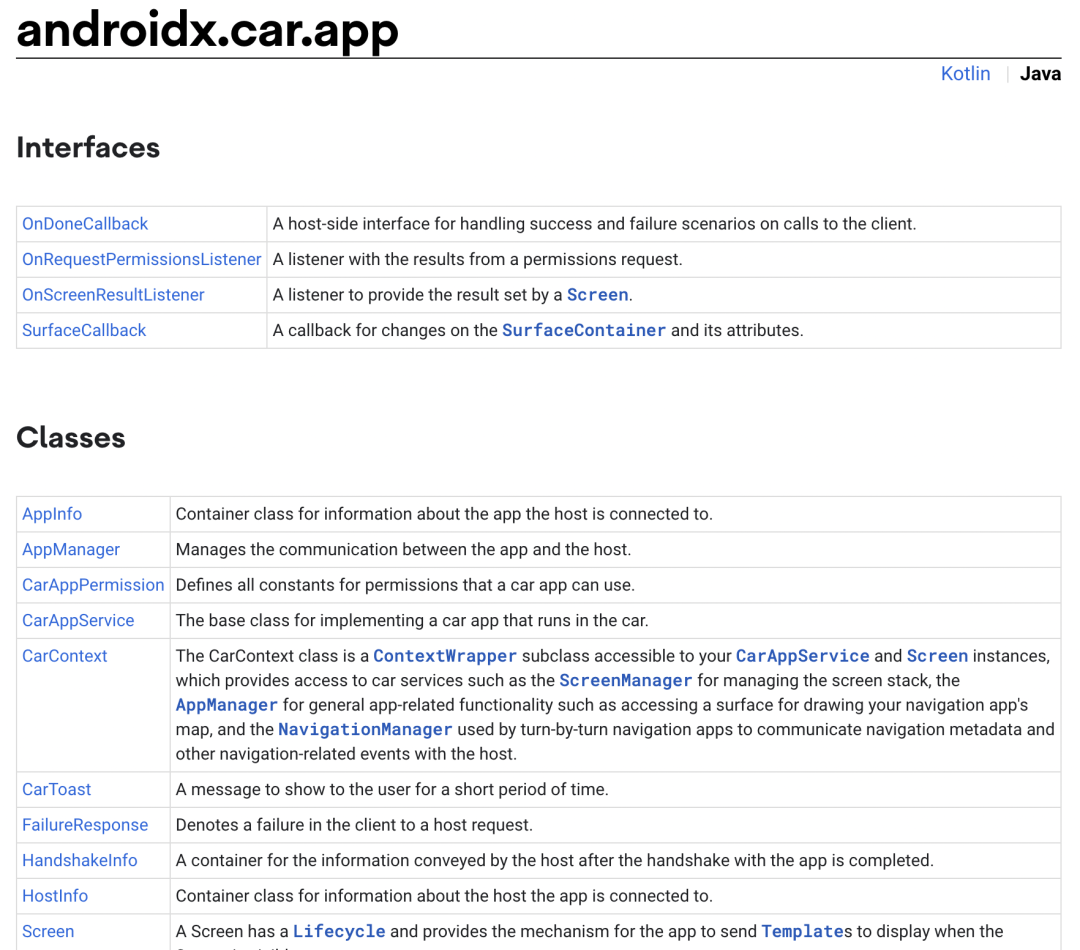 https://developer.android.google.cn/reference/androidx/car/app/package-summary
