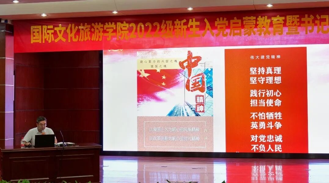 未来属于青年,希望寄予青年。为切实做好2022级新生入党启蒙教育工作,帮助新生更好地了解党的基本知识、认识党的发展历程、端正入党动机、熟知入党程序,引导新生积极向党组织靠拢,9月3日下午,国际文化旅游学院在文三106教室举行“新生入党启蒙教育暨书记第一课”讲座,学院党委副书记(主持工作)陈国华出席并作主题讲话,新生辅导员及2022级全体新生参加。