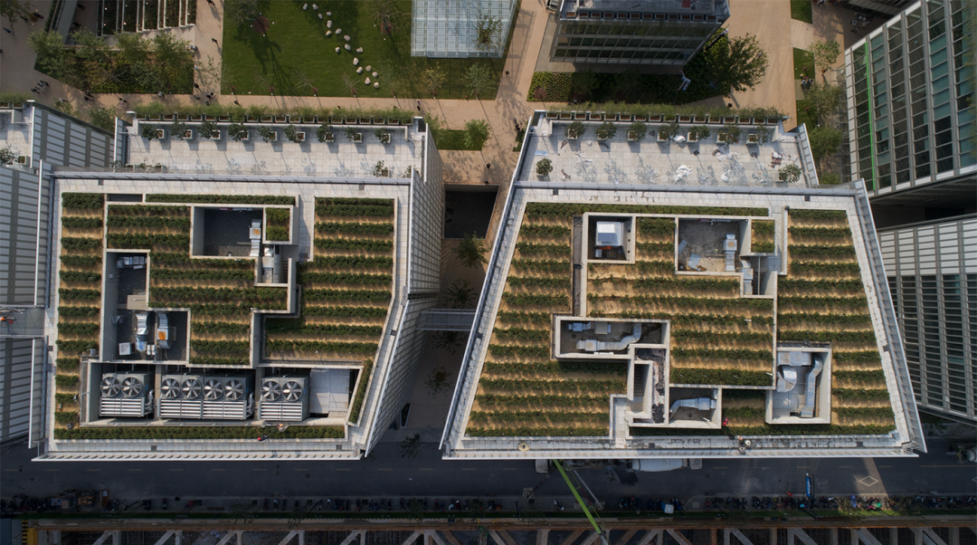 屋顶作为第五立面,种满了杭州的标志性树种——绿茶。