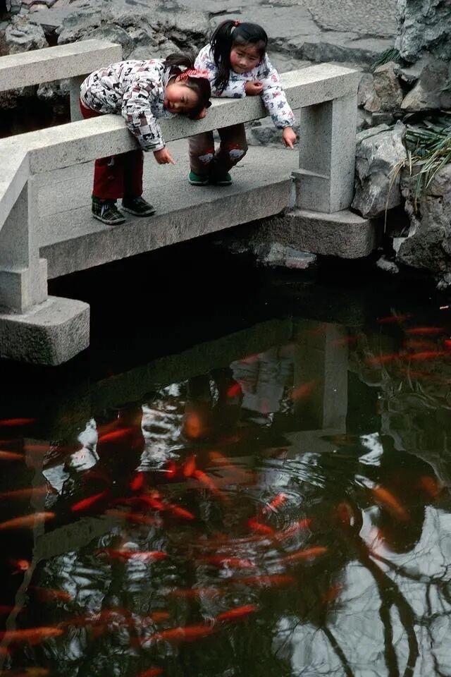 看鱼的小女孩,路口的提示牌,