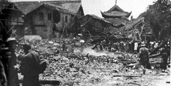 这次大轰炸,成都市民伤亡数百,盐市口一带炸成废墟,街上血肉横飞,电线杆上挂着残肢烂肉。传说黄包车夫跑累了放下车,回头才看见乘客已无头。