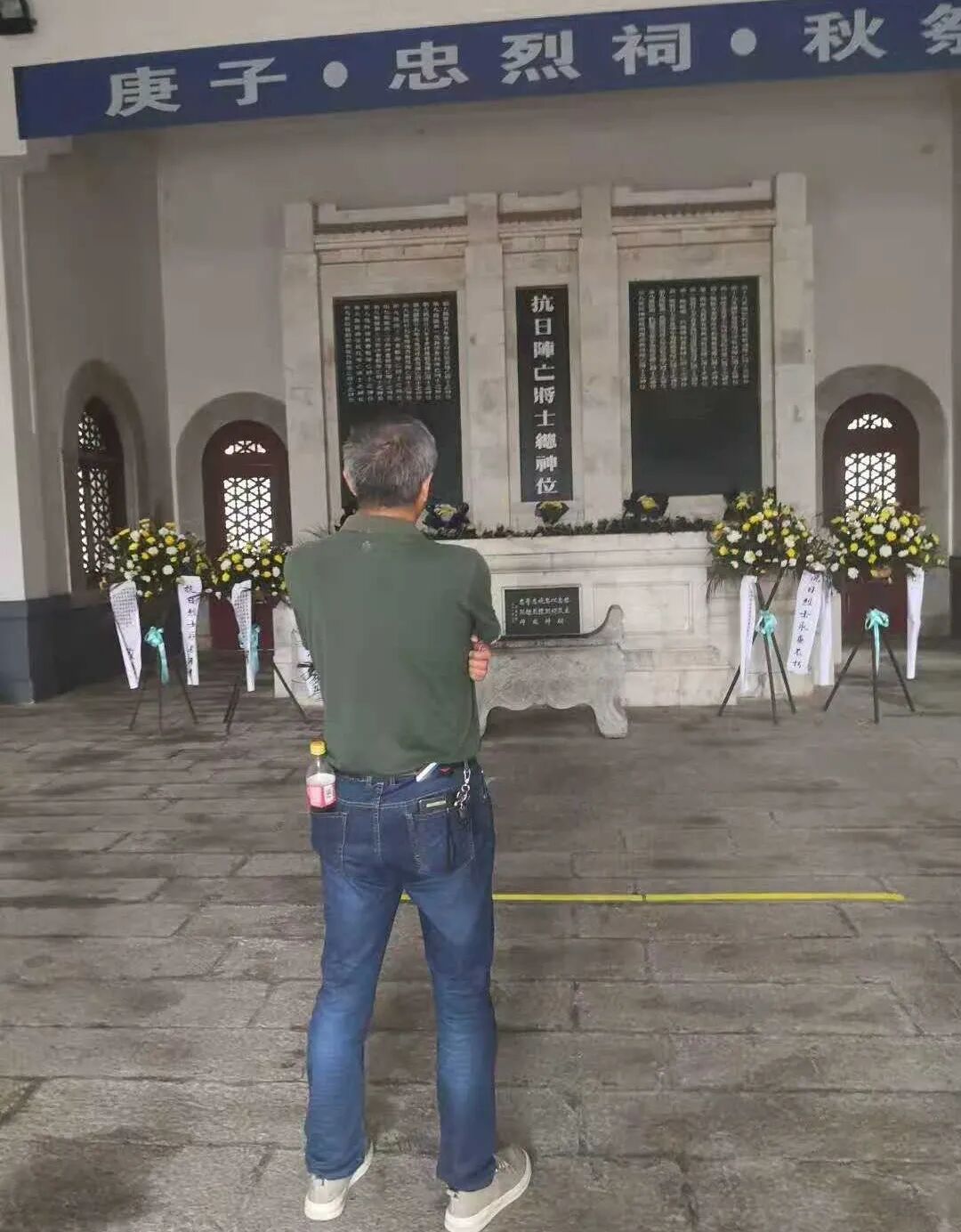 我们把带来的黄菊放在“抗日阵亡将士总神位”的台前 。