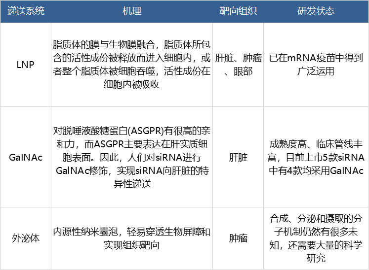 当前小核酸药物采用的主流递送系统