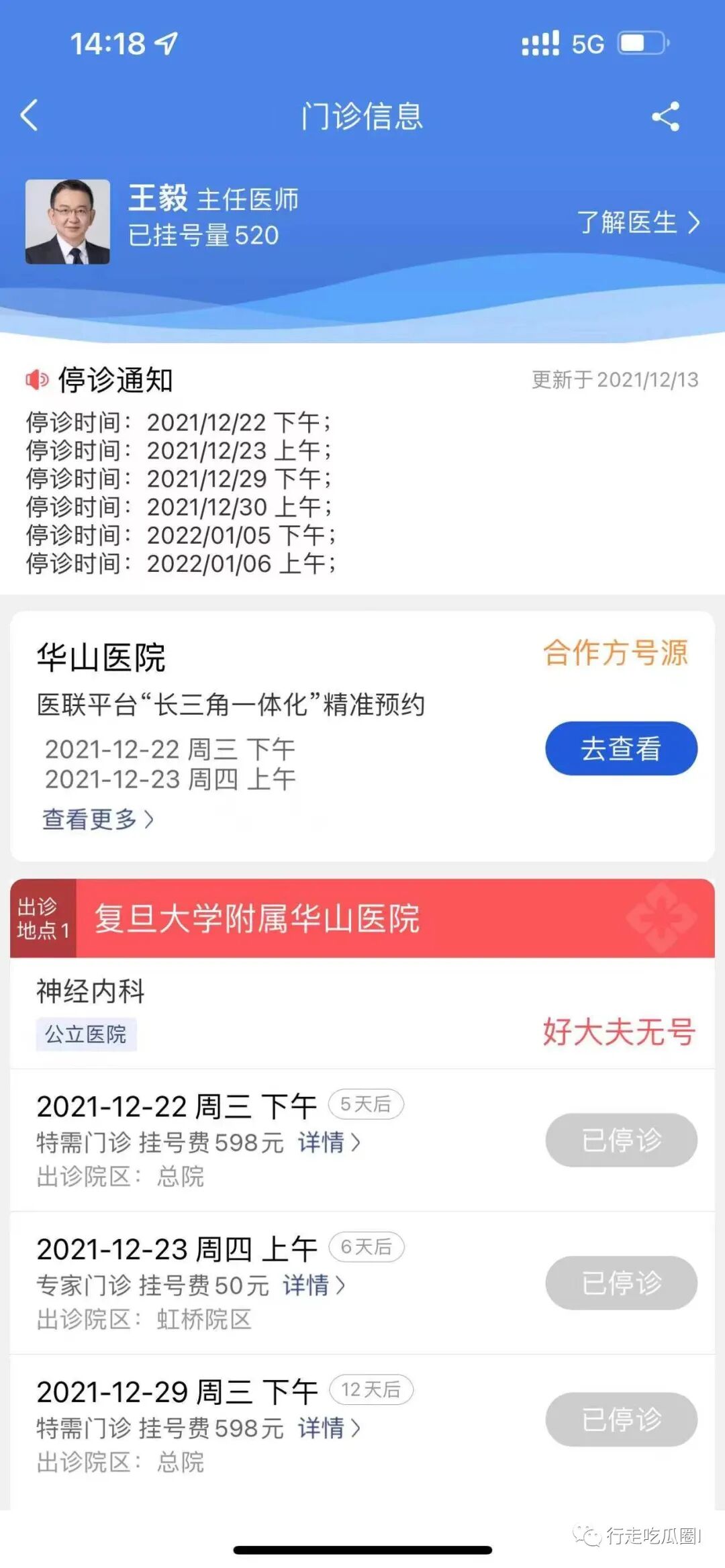 铁证如山之下,主任直接就被抓进去了,据说开价500万都没有搞定,看来这是铁了心的要搞臭对方。从网上的公开门诊信息,我们可以看到,这位主任的所有门诊都已经停诊,不再接受病人的预约。顺便提一嘴,这特需门诊小600元的挂号费,真心不便宜呀。