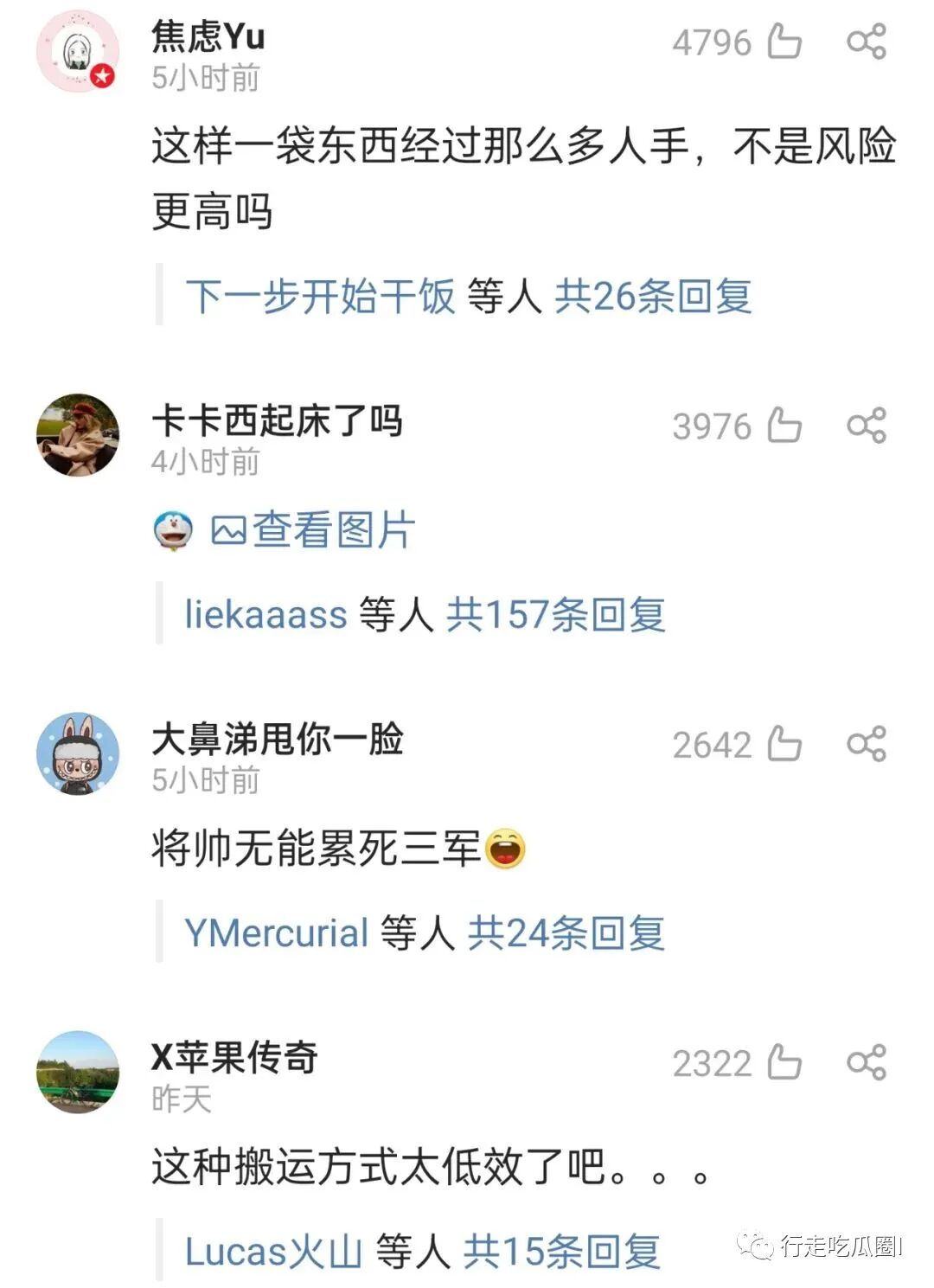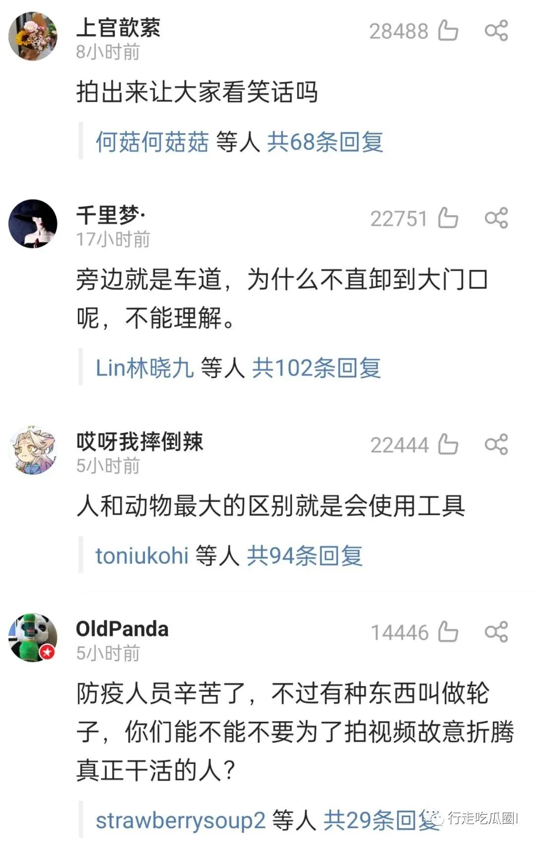 武汉当年有垃圾车送肉的丑事,现在轮到西安了,本来就是送到小区,手推车装货送进去的事情,又不是抗洪抢险没有条件,却非要折腾这么多人力,难怪评论里有人说,上次看到类似的场景还是在猫和老鼠里面。