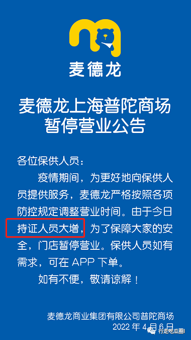 由于人流量实在太大,麦德龙被吓得,不得不在下午两点左右的时候,对外发布公告,“由于今日持证人员大增,为了保障大家的安全,门店暂停营业”。现在疫情这么严重,防疫工作肯定是要做好的,但是这个持证人员,倒是引起了大家的注意。
